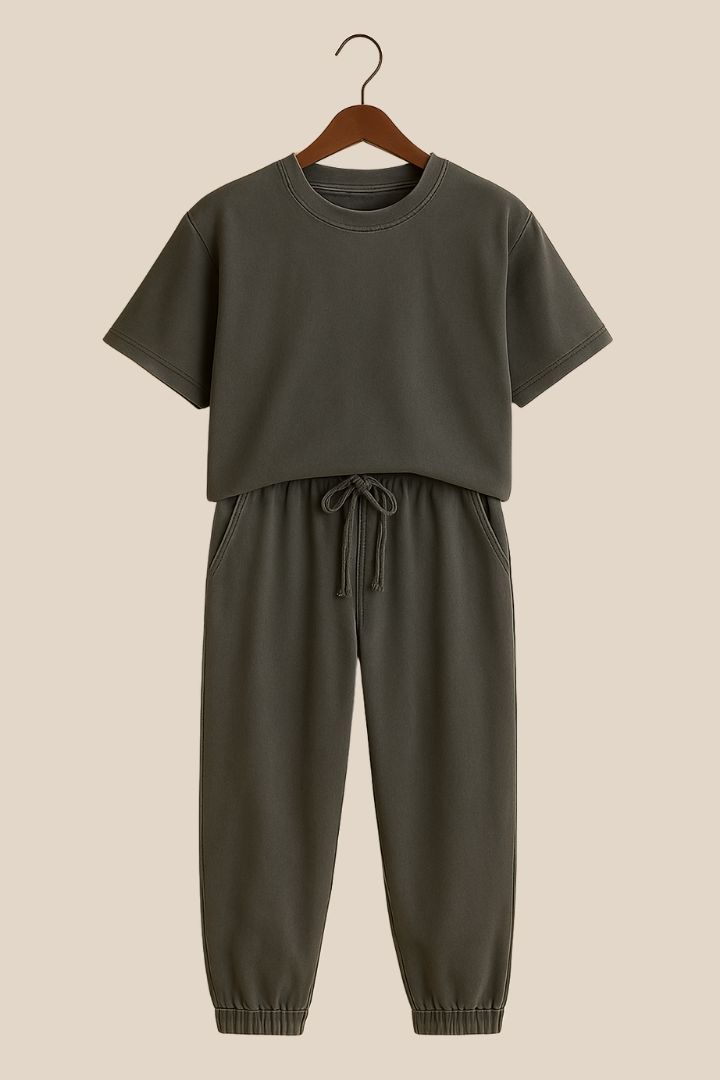 Opplev en diskret eleganse med dette essensielle, uformelle og raffinerte todelte settet. Eden er designet for den moderne kvinnen som setter pris på både komfort og stil, og har en flytende silhuett med et mykt stoff som beveger seg med deg. Ideelt for avslappende helger, spontane utflukter eller bare for å slappe av med stil.